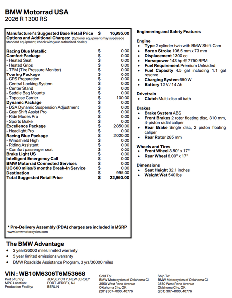 As sporty as it gets, or with optimized comfort for longer trips: The optional equipment for the R 1300 RS leaves nothing to be desired. The Performance model variant is designed for a dynamic riding style with its sport suspension, milled and adjustable footrest system, DTC-Shift and sport tires. If you would prefer to prioritize touring capabilities, you can also opt for seat heating, the Riding Assistant, windscreens of various heights, and numerous luggage options.